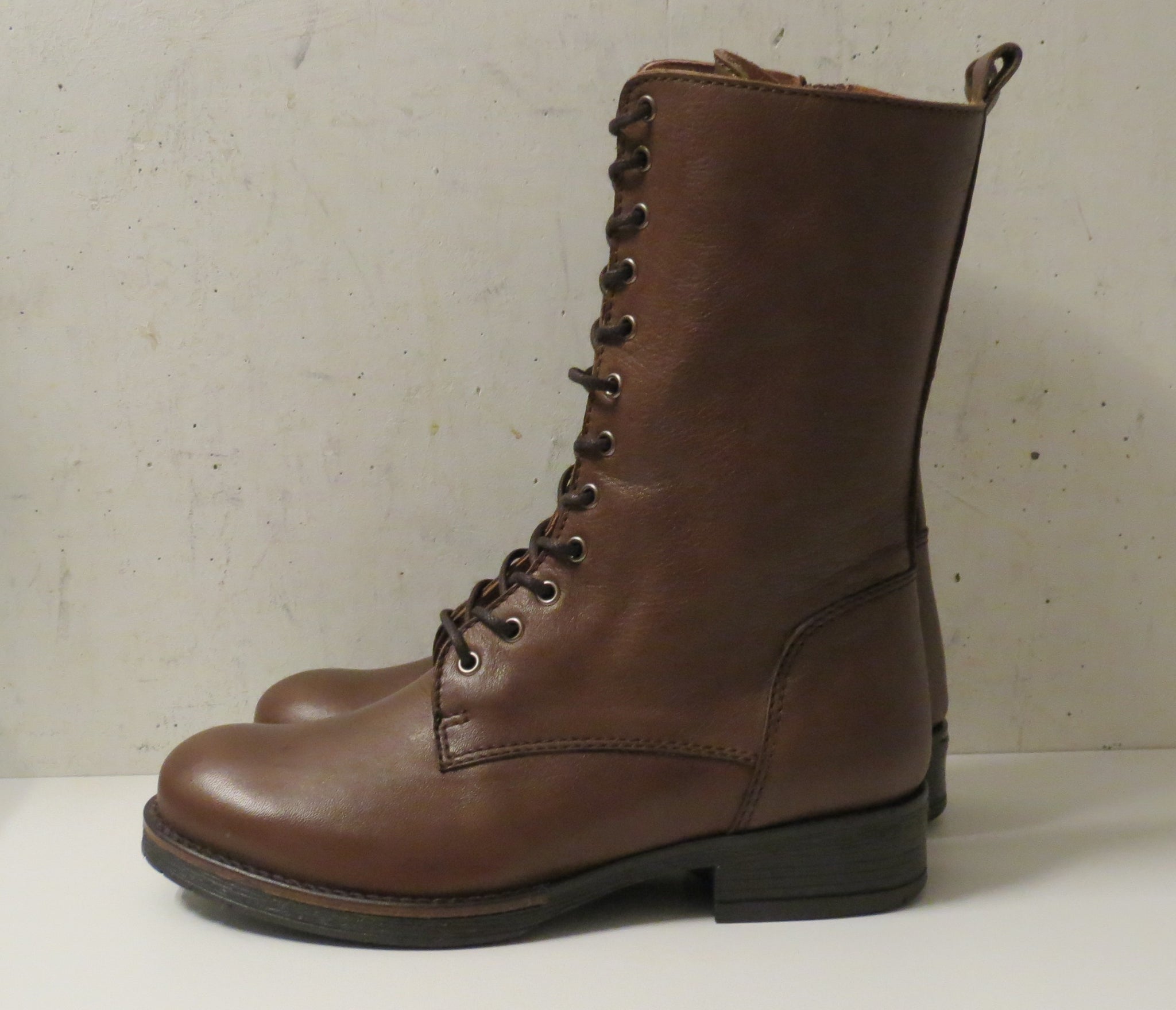 Flott leðurstégvél með rennilás að innanverðu, gúmmí sóli, laust innlegg.