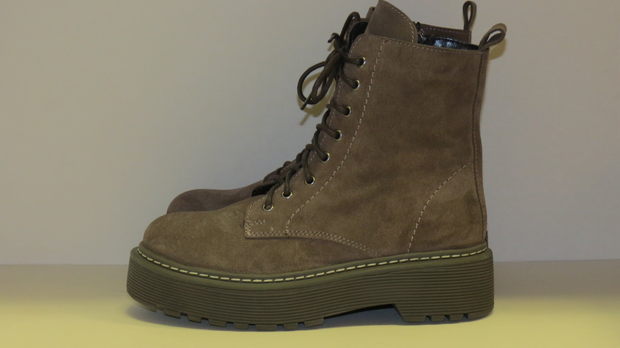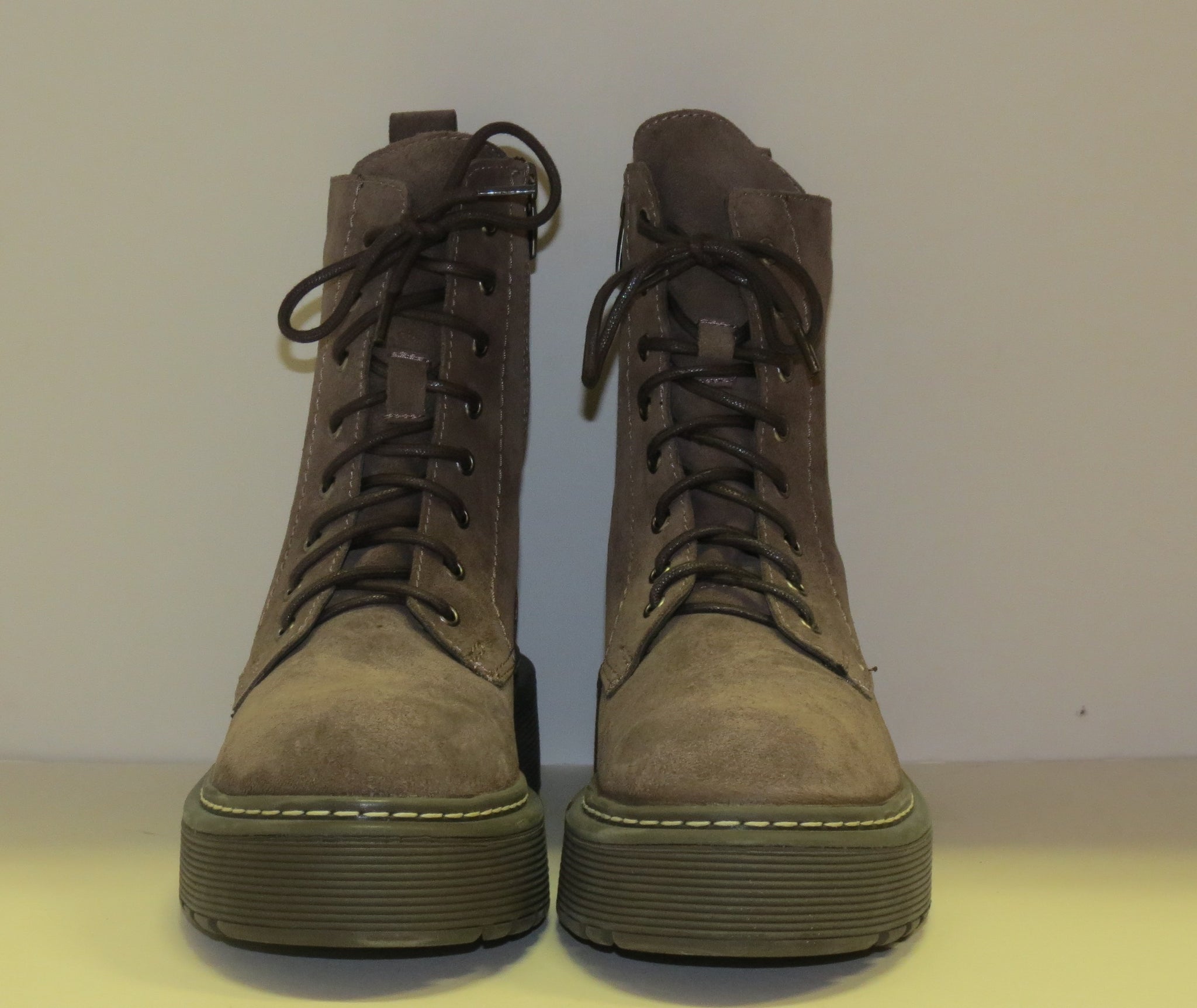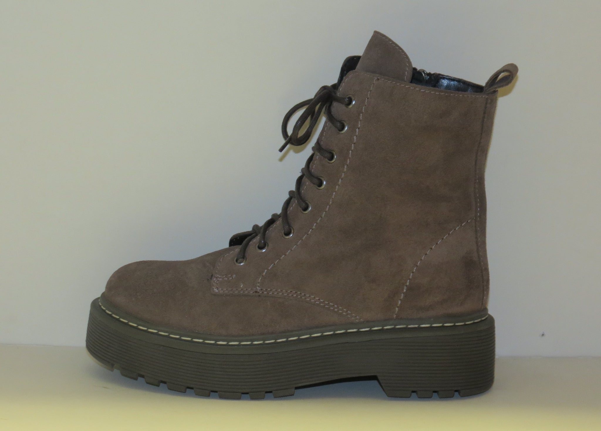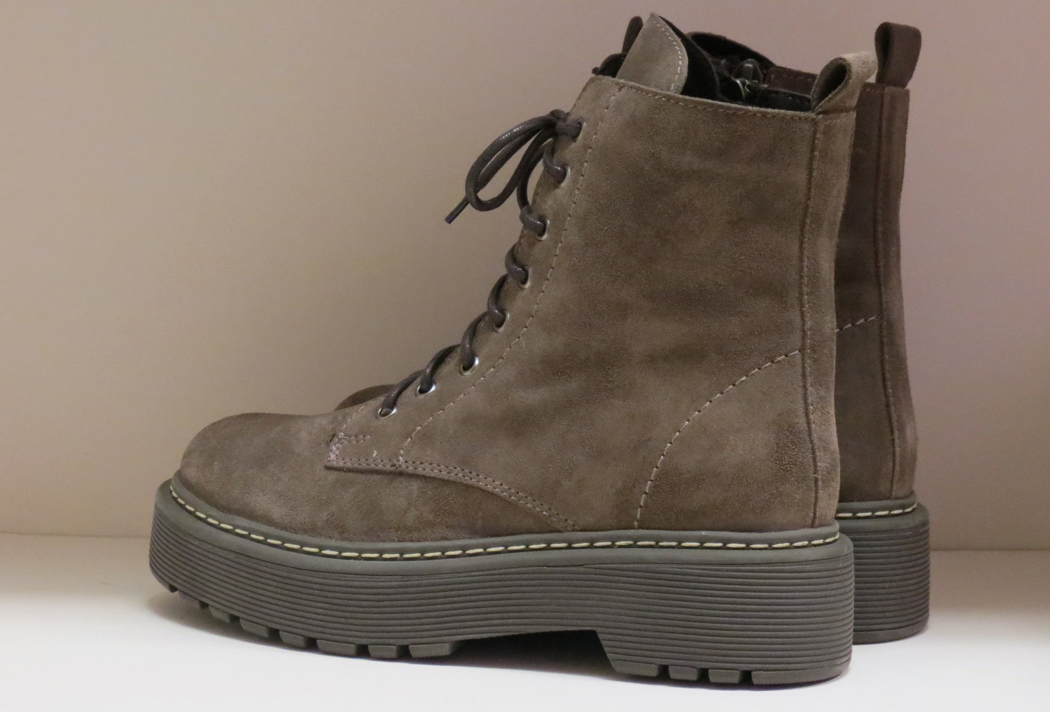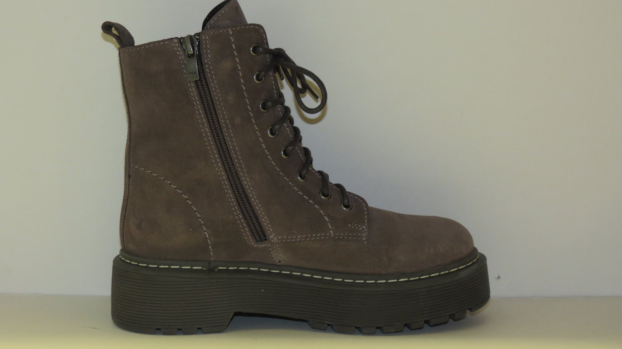 Flott ökklastígvél með þykkum gúmmísóla. Rennilás að innanverðu.