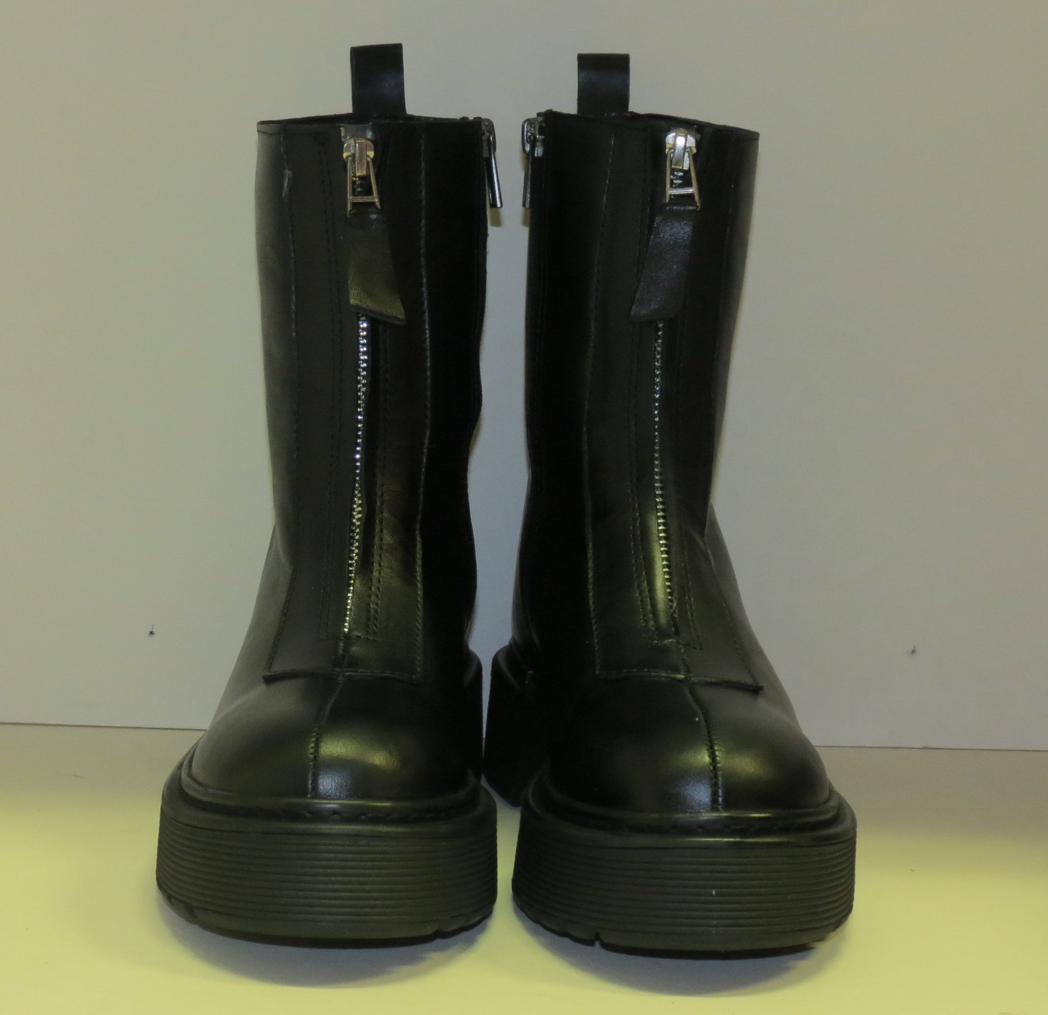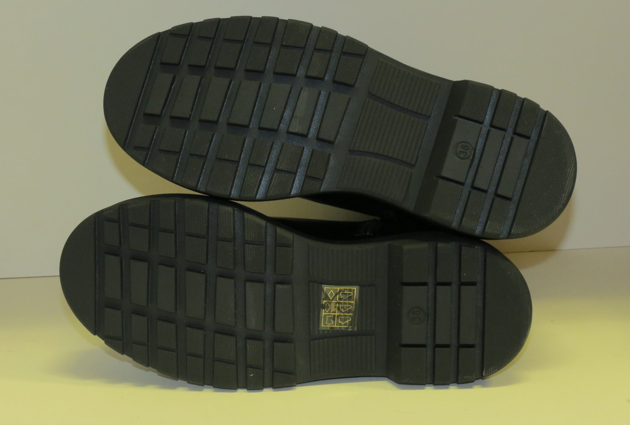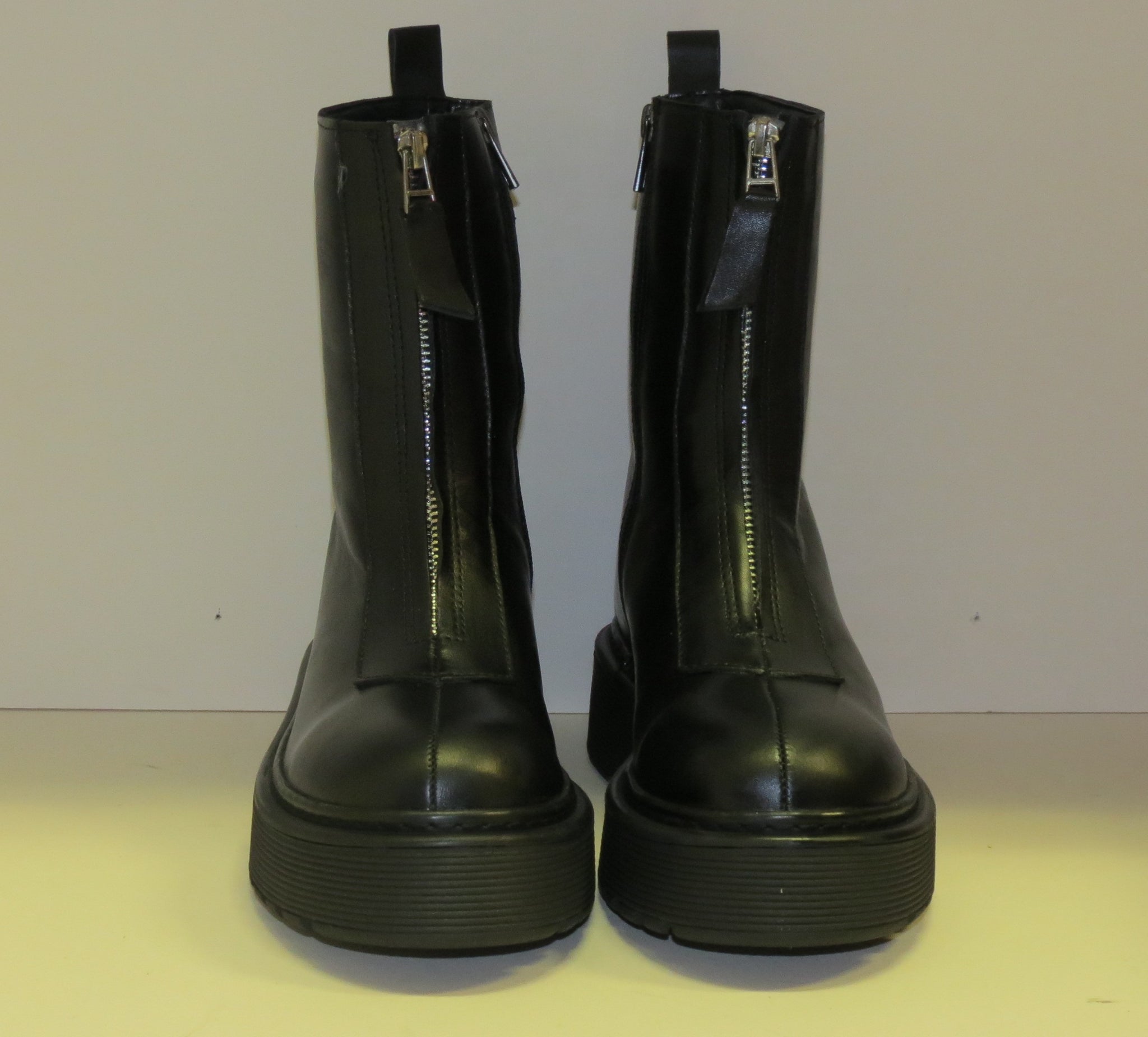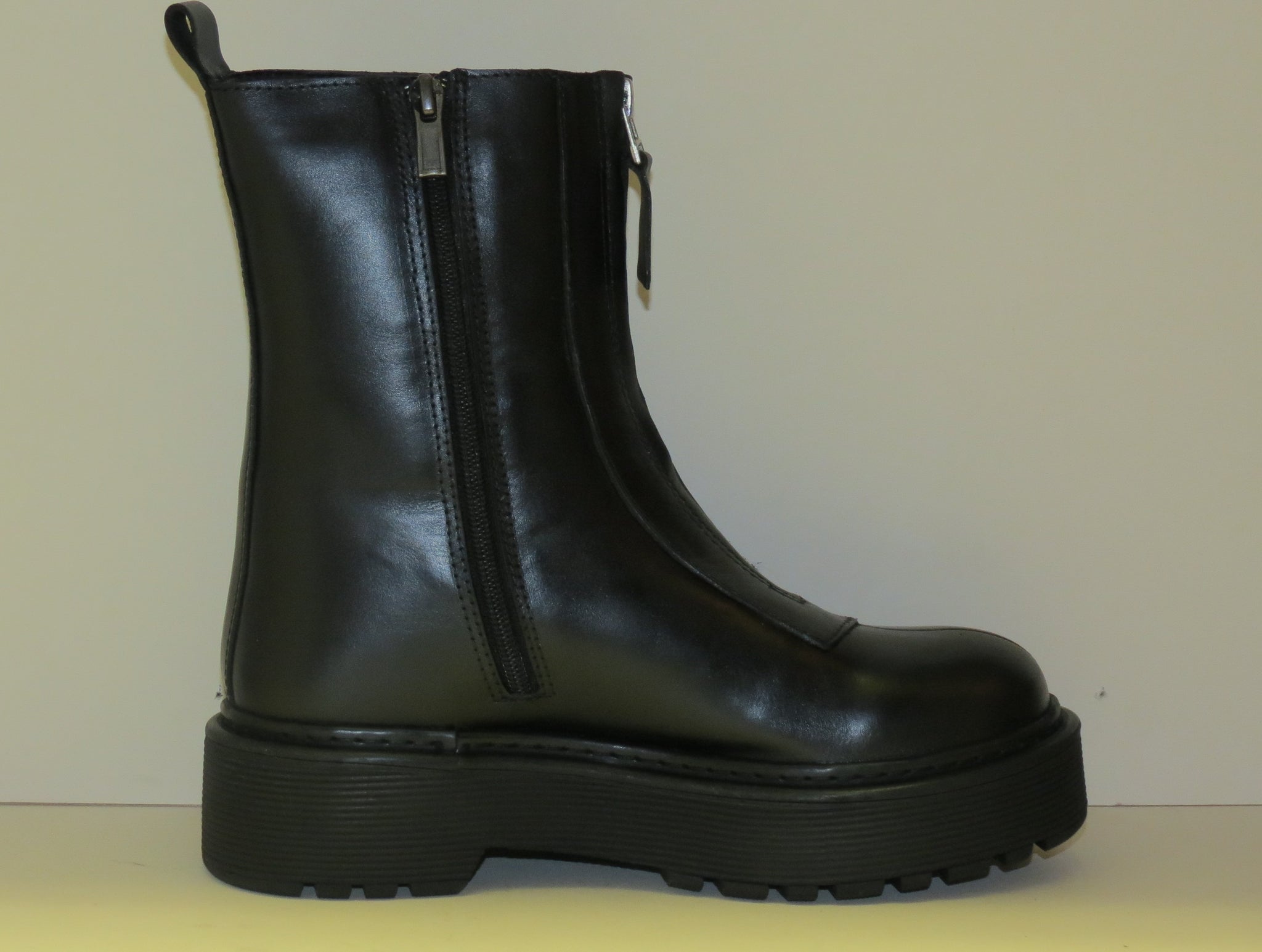 Ökklaskór með rennilás að innanverðu. Þykkur gúmmísóli.