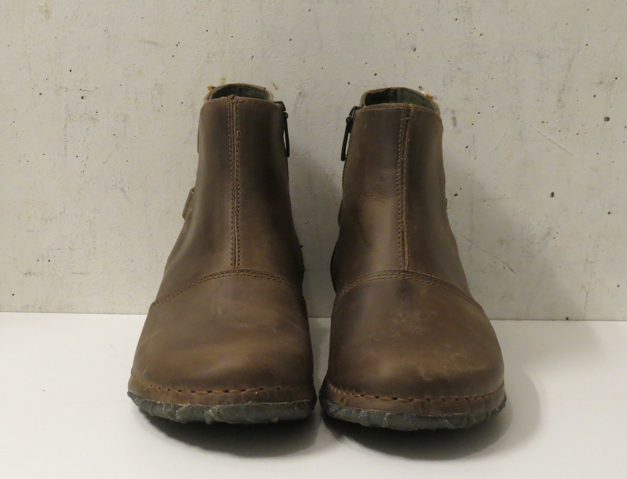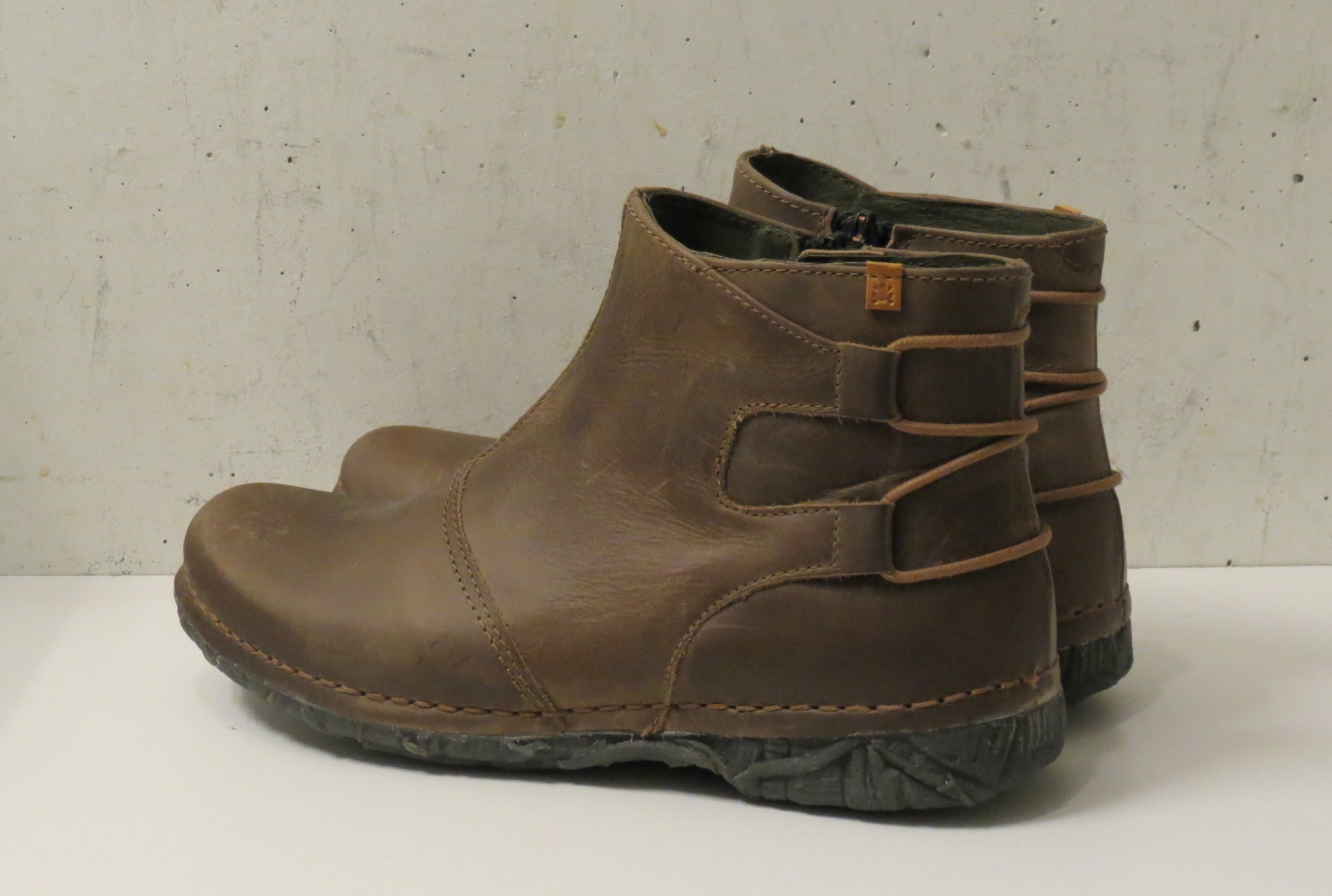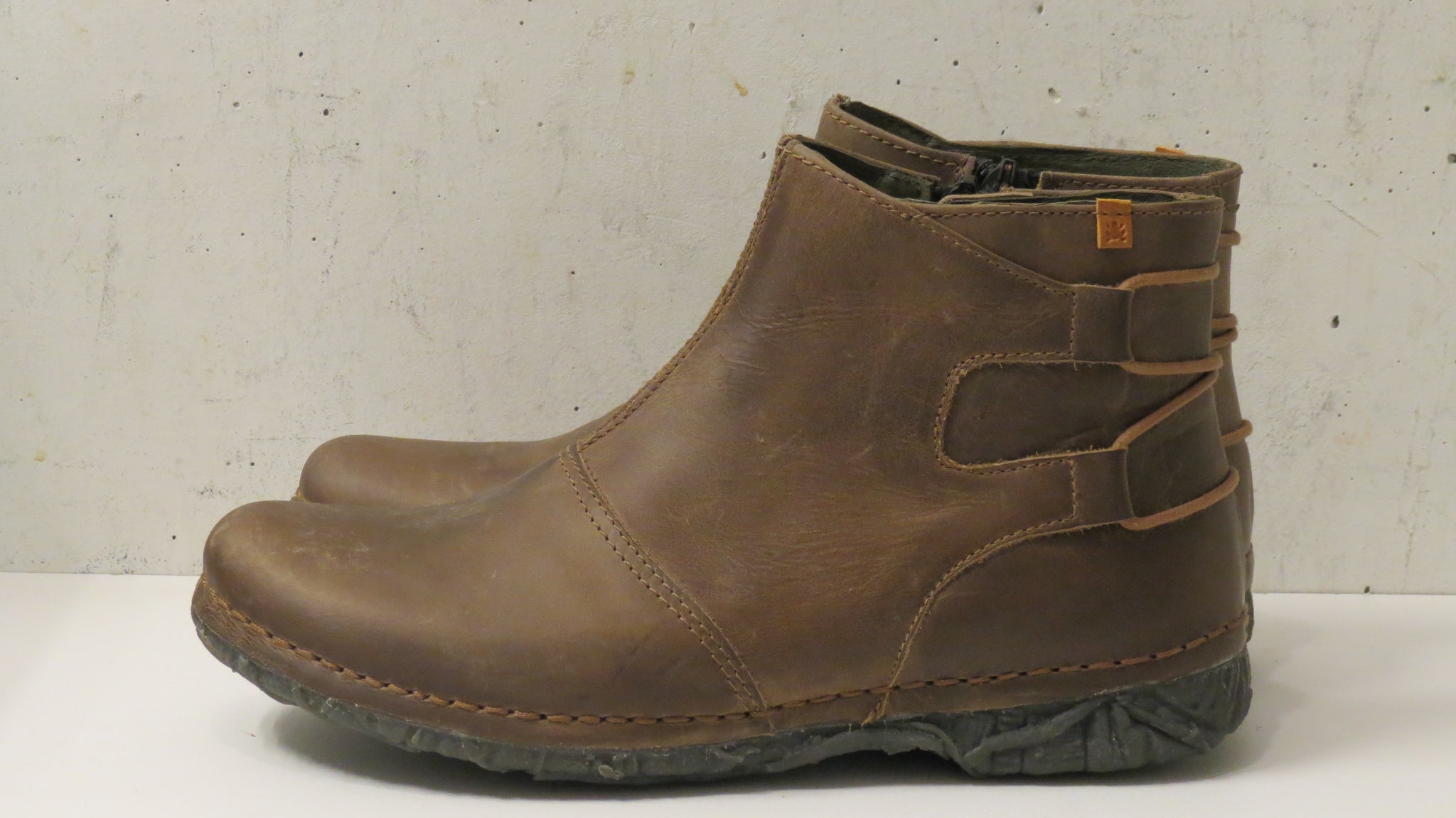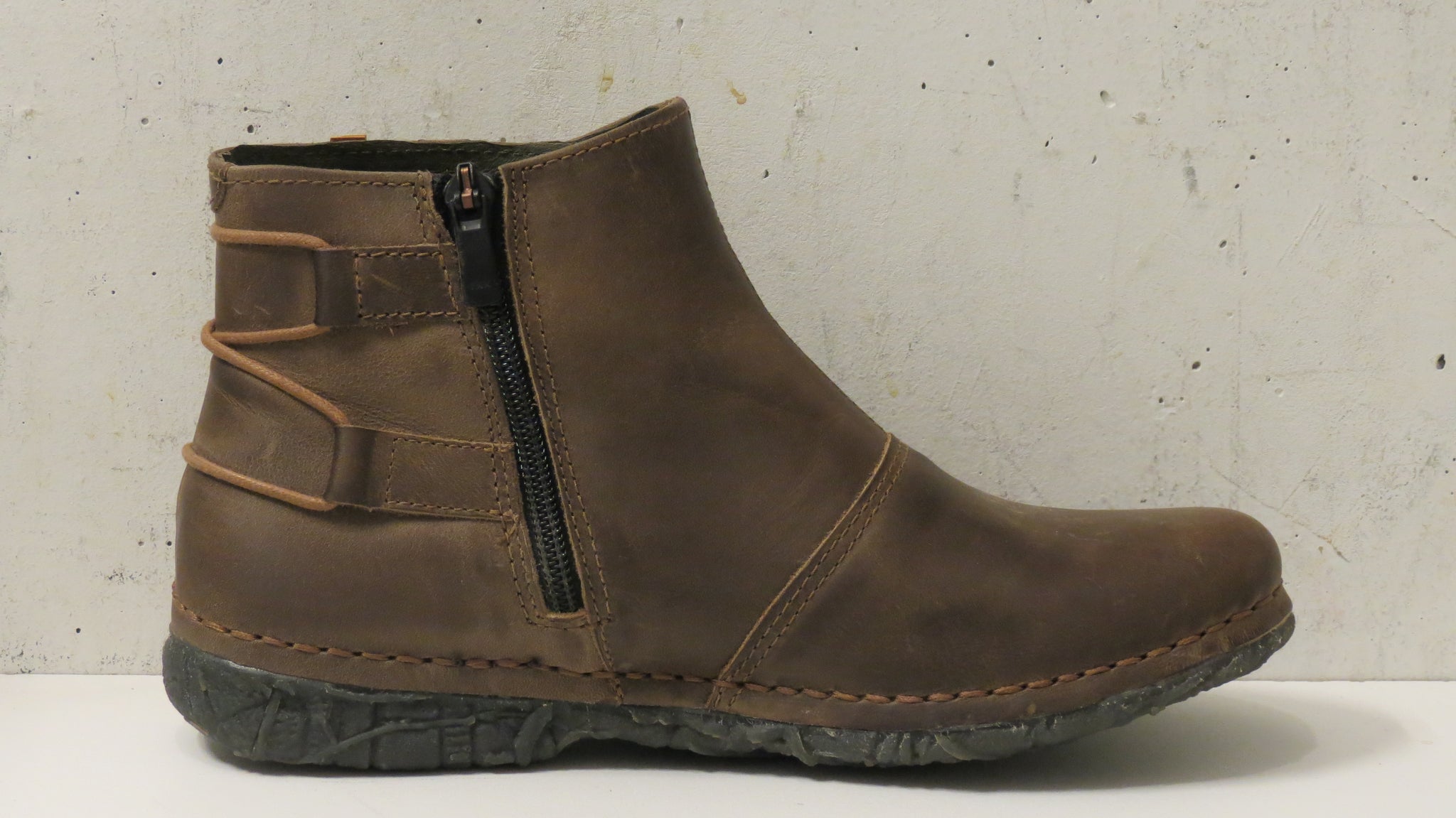 Ökklaskór með rennilás að innanverðu. Leðurfóðraðir.